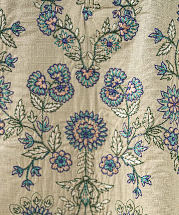 Upgrade your wardrobe in our embroidered beige cotton straight shirt paired with a matching blended shawl.