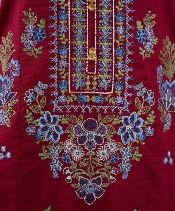 Dyed With Embroidered Front Panel, Dyed Back Panel, Band With Slit Neckline, Full Sleeves, Short Length
