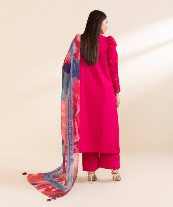 3 Piece - Embroidered Dobby Suit (Unstitched)