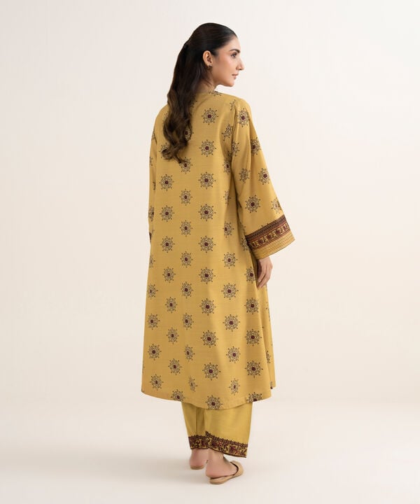 Printed With Embroidered Front Panel, Printed Back Panel, Round With Slit Neckline, Full Sleeves, Long Length