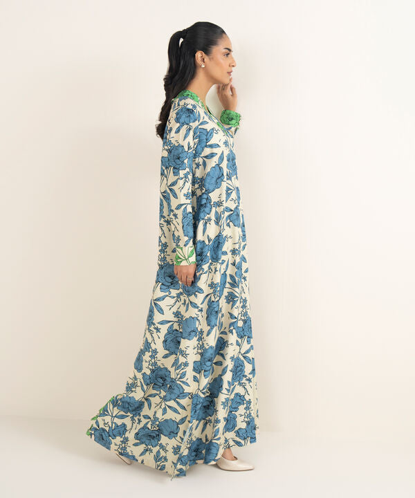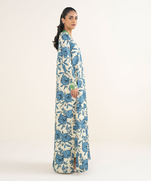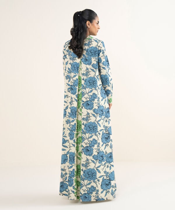 Printed Front Panel, Printed Back Panel, Shawl Collar Neckline, Full Sleeves, Long Length